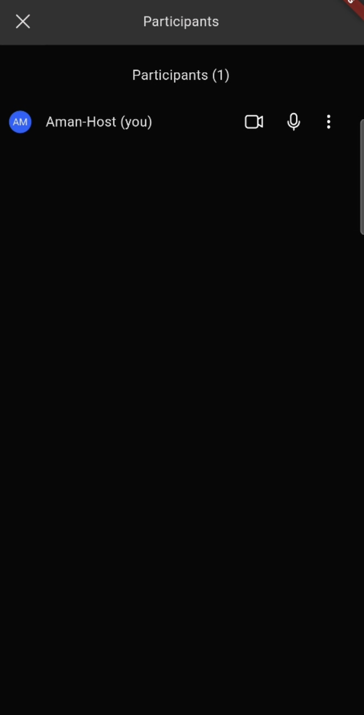 • The application navigates to the DyteParticipantPage, which displays the list of participants in the current session.